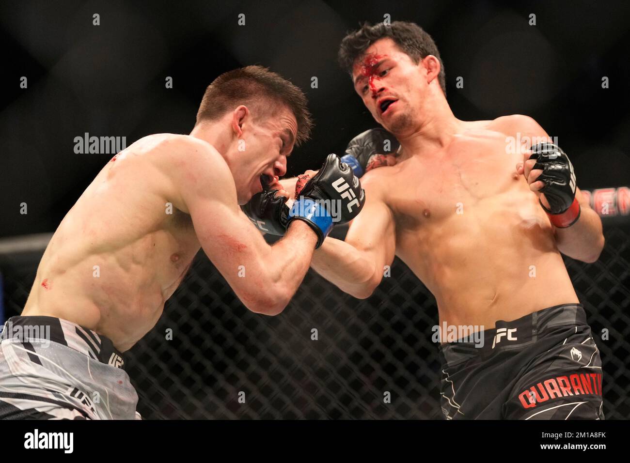 Las Vegas Nv December 10 R L Billy Quarantillo Punches Alexander Hernandez In Their Featherweight Fight During The Ufc 282 Event At T Mobile Arena On December 10 2022 In Las Vegas Nevada